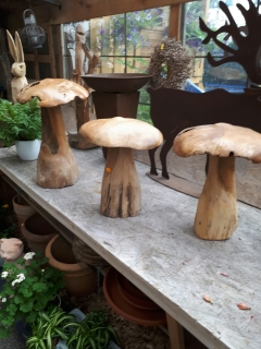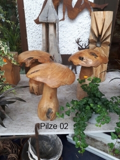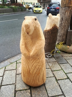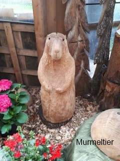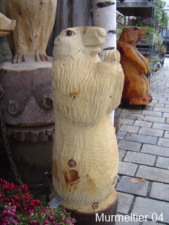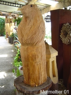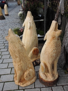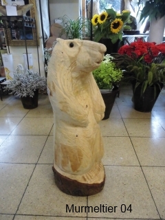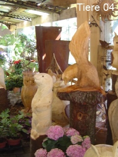 Skulpturen von Eulen, Adlern, Baeren und anderen Tieren
