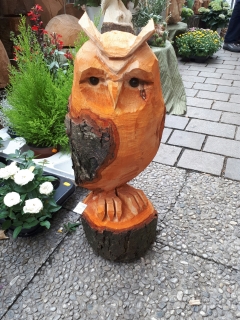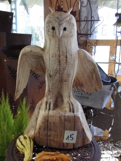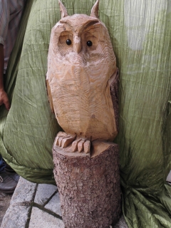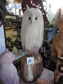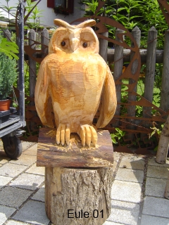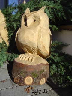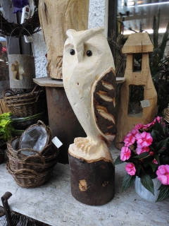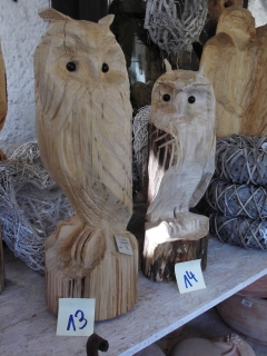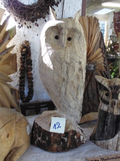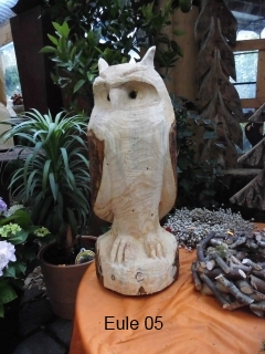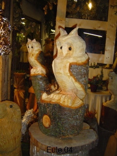 Skulpturen von Eulen, Adlern, Baeren und anderen Tieren