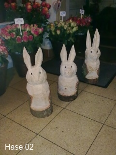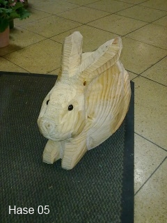 Skulpturen von Eulen, Adlern, Baeren und anderen Tieren
