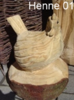 Skulpturen von Eulen, Adlern, Baeren und anderen Tieren