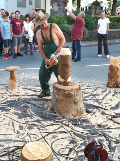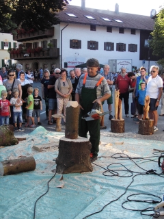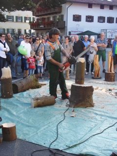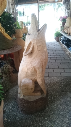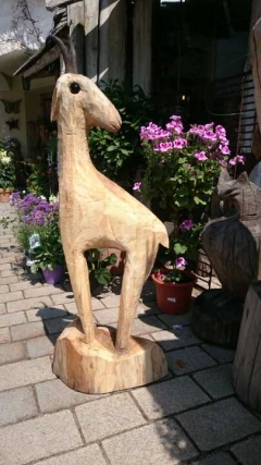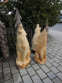 Skulpturen von Eulen, Adlern, Baeren und anderen Tieren